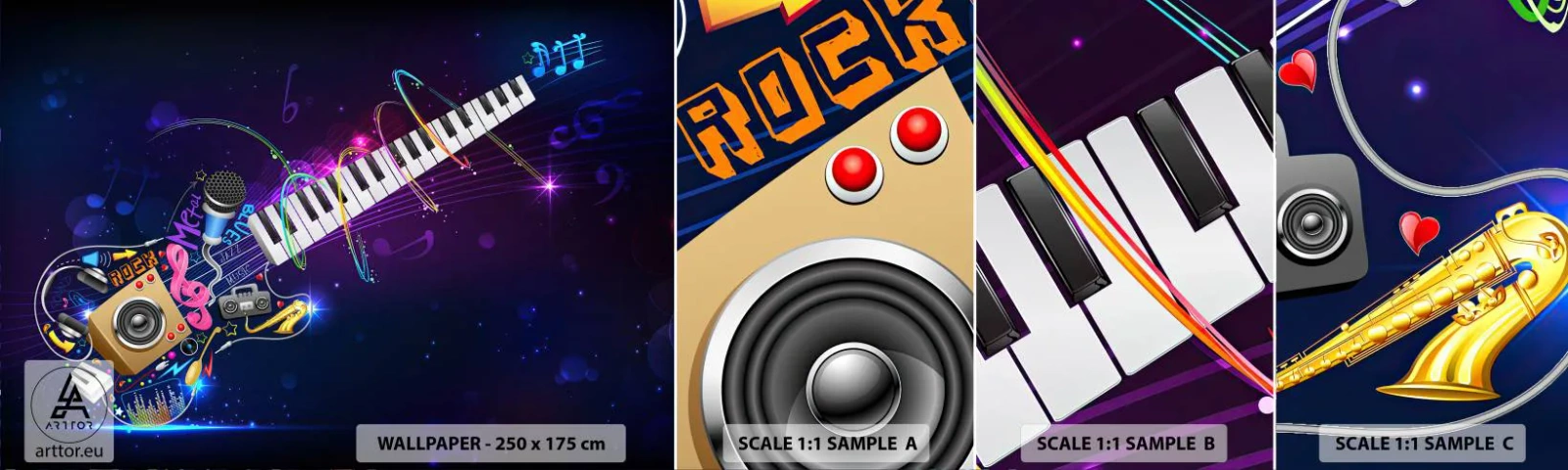 Mostră tapet autocolant Deluxe Sticker - Și totul este în regulă - Abstracția, Un instrument muzical, Muzică - 100x30 cm