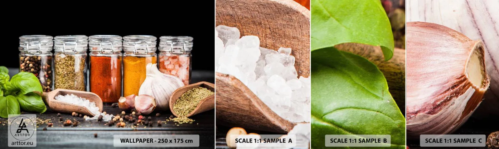 Mostră tapet autocolant Deluxe Sticker - Pentru a da un gust vieții - Gastronomie, Ierburi uscate, Condimente - 100x30 cm