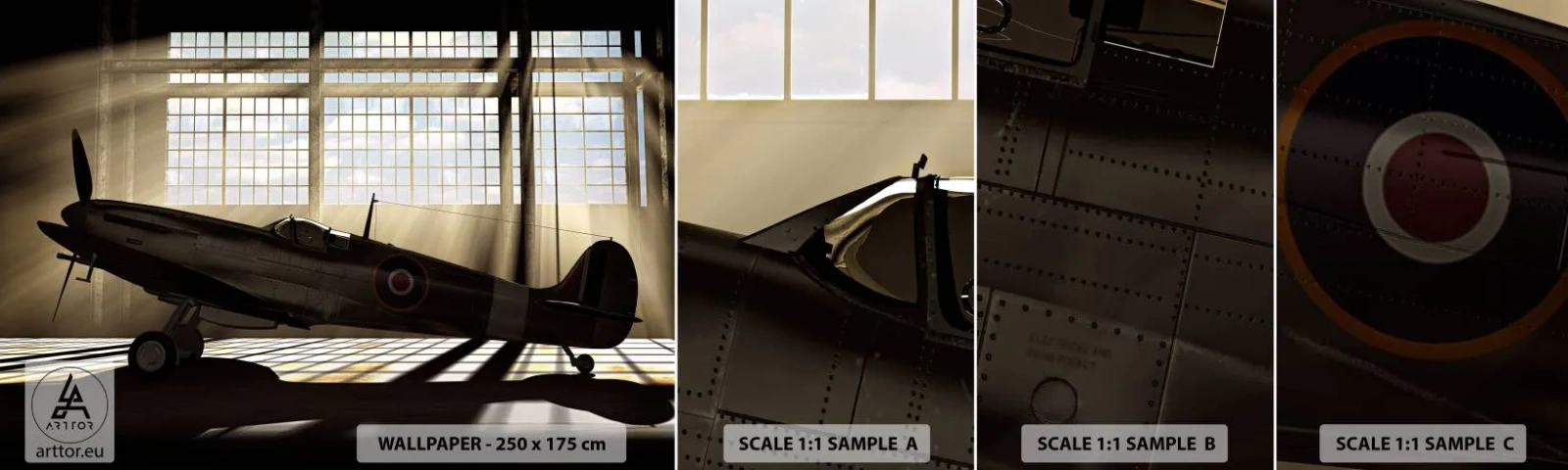 Mostră tapet autocolant Deluxe Sticker - Odihna războinicului - Avioane, Hangar de aviație, Avion - 100x30 cm