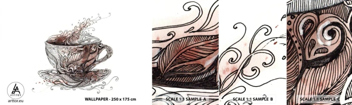 Mostră tapet autocolant Deluxe Sticker - Ceaiul este bun pentru orice - Abstracția, ceașcă, Espresso - 100x30 cm
