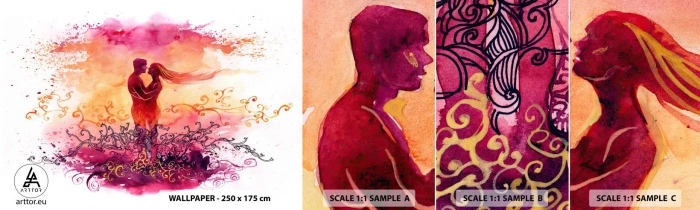 Mostră tapet autocolant Deluxe Sticker - De o singură inimă! Am nevoie de atât de puțin.. - Abstracția, Un cuplu de îndrăgostiți, Pup - 100x30 cm