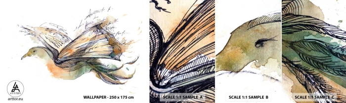 Mostră tapet autocolant Deluxe Sticker - Pe aripile poeziei - Abstracția, Pasăre, Carte - 100x30 cm