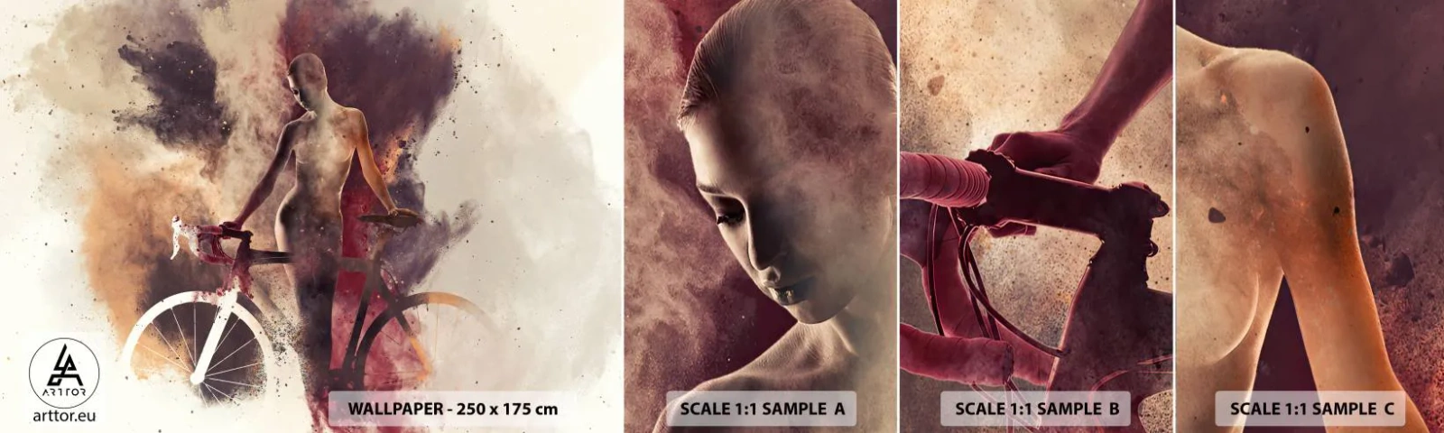 Mostră tapet autocolant Deluxe Sticker - În forme de marmură sufletul ciclist - Abstracția, Femeie, Bicicleta - 100x30 cm