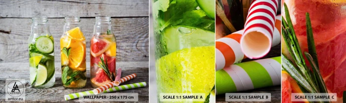 Mostră tapet autocolant Deluxe Sticker - Sănătoase prin natura - Gastronomie, Băutură cu fructe, Fructe - 100x30 cm