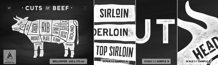 Mostră tapet autocolant Deluxe Sticker - Abecedar de măcelar - Gastronomie, Taur, Vită - 100x30 cm