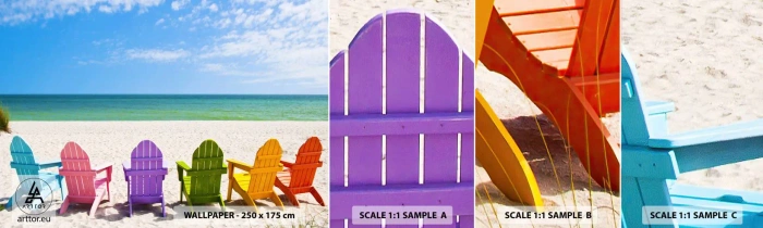 Mostră tapet autocolant Deluxe Sticker - Plaja curcubeu - Peisaj, plajă, Şezlonguri - 100x30 cm