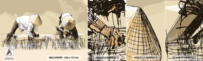 Mostră tapet autocolant Deluxe Sticker - O recoltă reușită - Asia, Plantația de orez, Câmp de orez - 100x30 cm