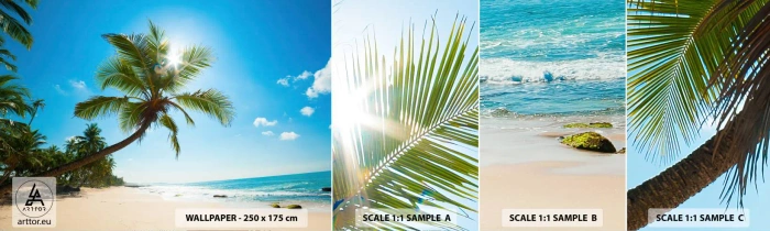 Mostră tapet autocolant Deluxe Sticker - Nu arăta nimănui - Peisaj, plajă, Palmier de nuca de cocos - 100x30 cm
