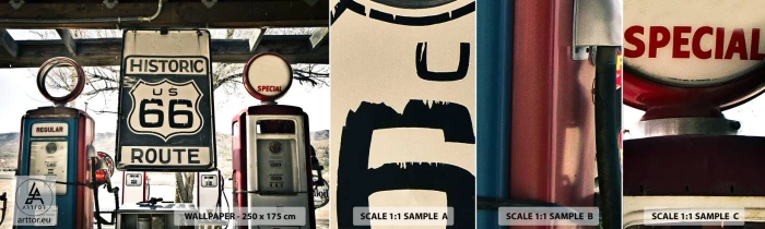 Mostră tapet autocolant Deluxe Sticker - O călătorie americană retro - Epocă, Ruta 66, Ruta 66 - 100x30 cm