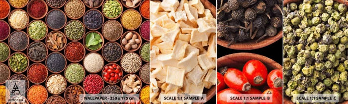 Mostră tapet autocolant Deluxe Sticker - Toate gusturile lumii - Gastronomie, Condimente, Ierburi uscate - 100x30 cm