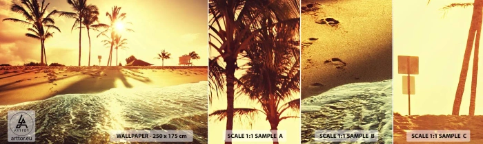 Mostră tapet autocolant Deluxe Sticker - California după-amiază - Peisaj, plajă, Palmier de nuca de cocos - 100x30 cm