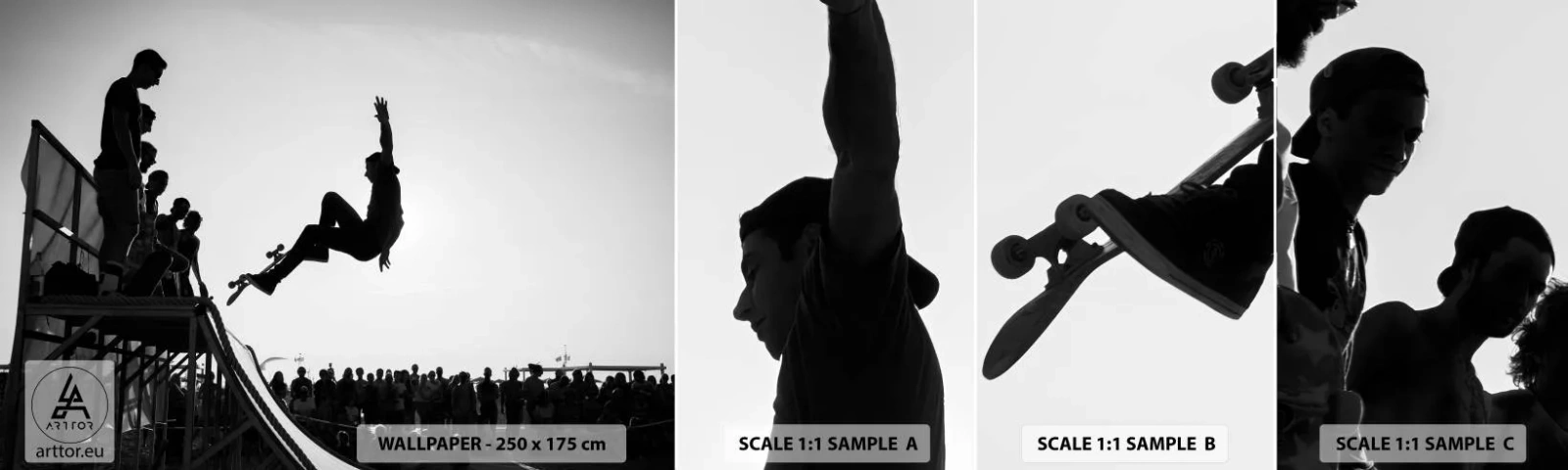 Mostră tapet autocolant Deluxe Sticker - Eroi și spectatori - Skate Park, Skateboard, Sport - 100x30 cm