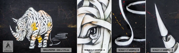 Mostră tapet autocolant Deluxe Sticker - Rinocer cu piele delicată - Abstracția, Rinocer, Abstracția - 100x30 cm