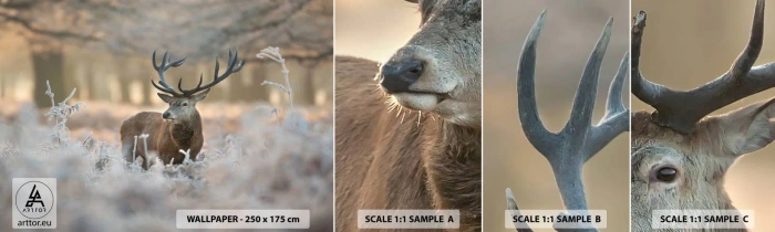 Mostră tapet autocolant Deluxe Sticker - O dimineață răcoroasă - Peisaj, Cerb, Animale - 100x30 cm