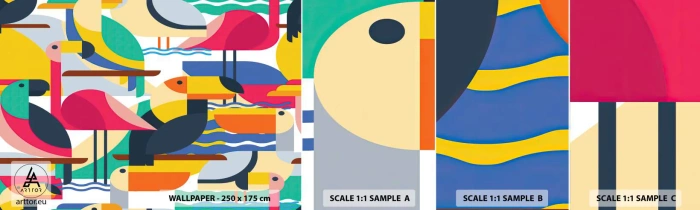 Mostră tapet autocolant Deluxe Sticker - Cheful păsărilor - Abstracția, Pelican, Bucată - 100x30 cm