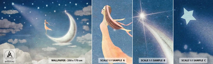 Mostră tapet autocolant Deluxe Sticker - Provocatoare în albastru - Abstracția, Pentru copii, Luna - 100x30 cm