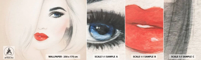 Mostră tapet autocolant Deluxe Sticker - Hipnotizează și intoxică - Portretul unei femei, Chipul de femeie, buze rosii - 100x30 cm