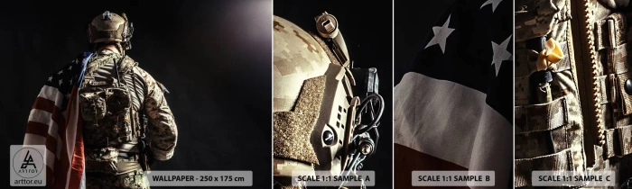 Mostră tapet autocolant Deluxe Sticker - D-aia - Soldat, Steagul american, Comando - 100x30 cm