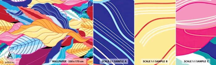 Mostră tapet autocolant Deluxe Sticker - O dezordine colorată - Abstracția, Frunze colorate, Bucată - 100x30 cm