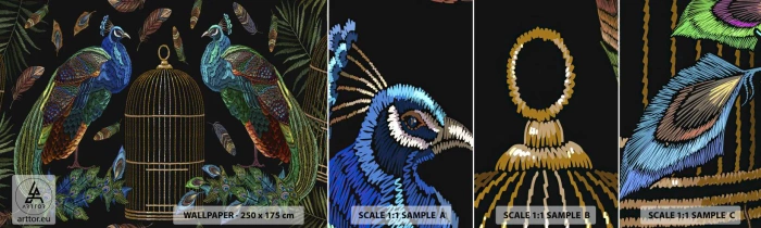Mostră tapet autocolant Deluxe Sticker - În veșmânt regal - Abstracția, Păun, Pana de paun - 100x30 cm