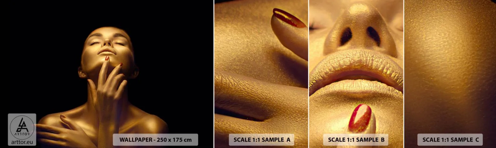 Mostră tapet autocolant Deluxe Sticker - Ca mătasea aurie - Femeie, Chipul de femeie, Corp - 100x30 cm