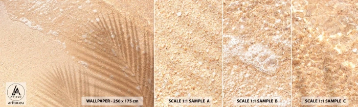Mostră tapet autocolant Deluxe Sticker - Umbra unei veri fierbinți - Abstracția, Nisip Pe Plaja, Frunze - 100x30 cm