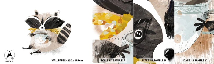 Mostră tapet autocolant Deluxe Sticker - Prietenul meu ratonul - Pentru copii, Raton, Grafică - 100x30 cm