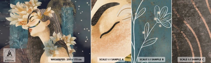 Mostră tapet autocolant Deluxe Sticker - Povestea prințesei cu crini - Abstracția, Femeie, Flori - 100x30 cm