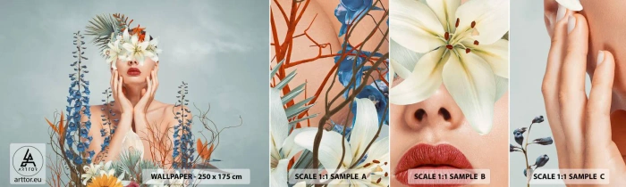 Mostră tapet autocolant Deluxe Sticker - Femeia floare - Abstracția, Femeie, Flori - 100x30 cm