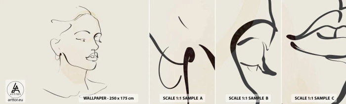Mostră tapet autocolant Deluxe Sticker - Cu o linie sigură - Abstracția, Chipul de femeie, Linie de arta - 100x30 cm