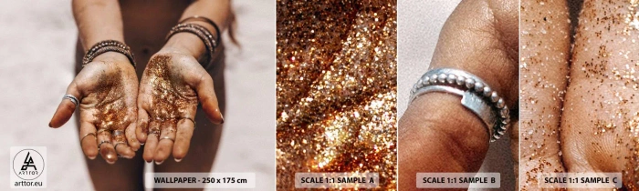 Mostră tapet autocolant Deluxe Sticker - Un cadou pentru tine - Mâinile femeilor, Boho, Aur - 100x30 cm