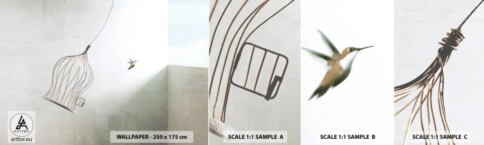 Mostră tapet autocolant Deluxe Sticker - Eliberat - Abstracția, Pasăre, Colivie - 100x30 cm