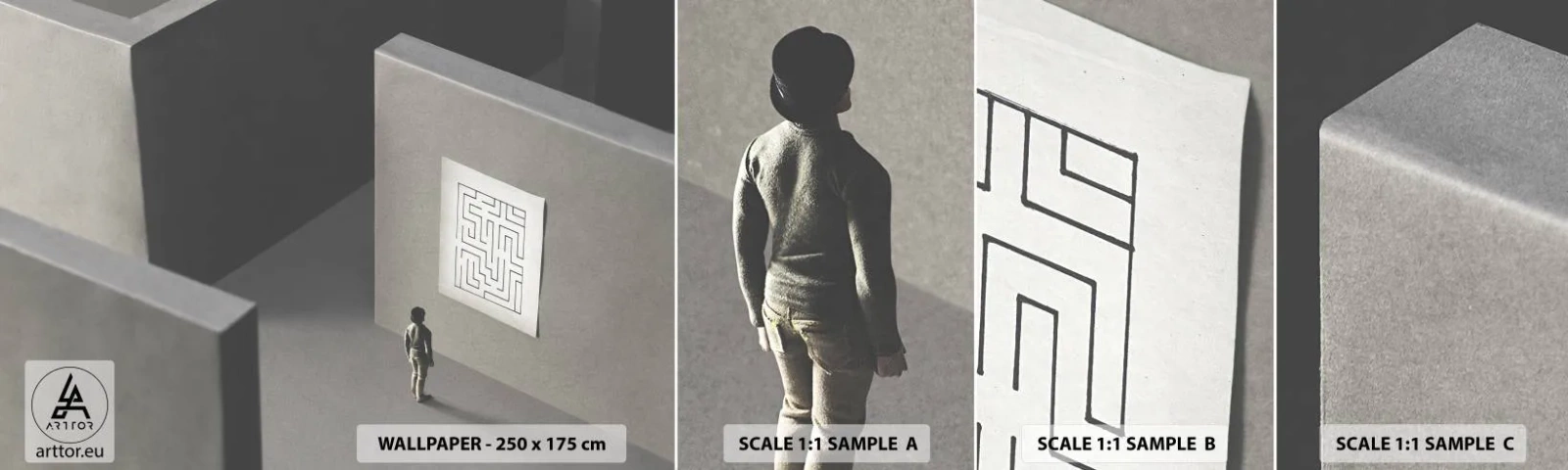 Mostră tapet autocolant Deluxe Sticker - Dar unde sunt? - Labirint, Abstracția, Bucată - 100x30 cm