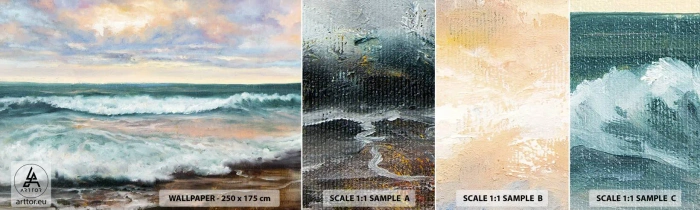 Gramaj mare 290g/m2 împreună cu o structură palpabilă Nisip pe suprafața tapetelor, face produsul o soluție exclusivă și de design pentru oricine caută decorațiuni unice pentru interior. Avantajul grosimii excepționale a materialului este și o acoperire excelentă, care facilitează semnificativ montajul. Structura fototapetă PREMIUM SAND creează impresia unui print pe o structură fină care amintește de nisip.