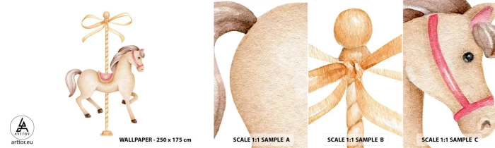 Mostră tapet autocolant Deluxe Sticker - Într-un trap grațios - Cal, Carusele, Fată - 100x30 cm