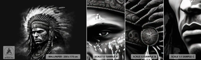 Mostră tapet autocolant Deluxe Sticker - Conducător și luptător - indian, Triburi, Etnic - 100x30 cm