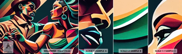 Mostră tapet autocolant Deluxe Sticker - În ritmul inimii - Cubism, Cuplu, Dans - 100x30 cm