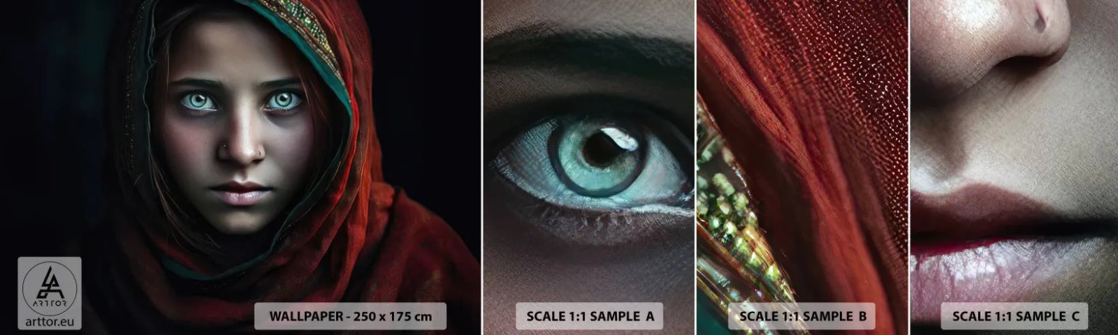 Mostră tapet autocolant Deluxe Sticker - Prințesa orientală - Fată, Portret, Pakistan - 100x30 cm
