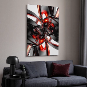 Tablou pe pânză - Mișcare în grafit și roșu - 100x40 cm