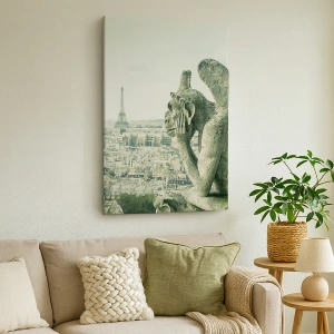 Tabloul pe pânză „Garguie și Paris” este o compoziție extraordinară care combină frumusețea arhitecturii gotice cu o vedere contemporană a orizontului Parisului. Elementul central îl reprezintă garguielele care decorează Catedrala Notre-Dame, cu vedere la orașul maiestuos cu Turnul Eiffel în fundal. Acest motiv reflectă atât măiestria artistică, cât și caracterul romantic al capitalei franceze.