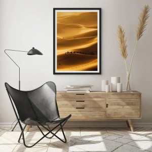 - Acest poster înfățișează o caravană de cămile traversând dunele deșertului în lumină aurie. Un peisaj exotic plin de liniște și inspirație, perfect pentru decorarea unui living, dormitor sau birou.