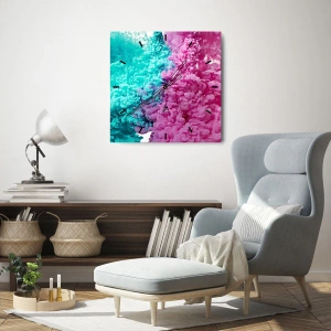 Ceas de perete - Ceas pe sticlă - Combinație abstractă de culori roz și turcoaz - 30x30cm - O ciocnire decisivă - Decorațiune modernă pentru perete pentru living, bucătărie și dormitor ARTTOR