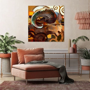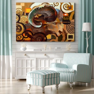 - O imprimare pe pânză care înfățișează un berbec simbolic într-o compoziție abstractă plină de spirale și culori calde. O decorațiune unică ce aduce energie și caracter oricărui interior.
