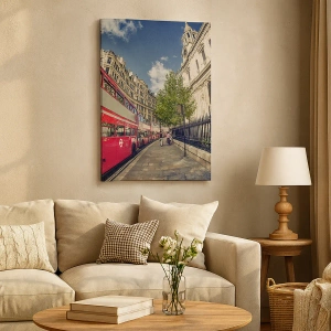 Tablou pe pânză - Stradă din Londra în gri și roșu - 50x50 cm