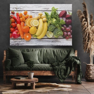 Tablou pe pânză Canvas - Fructe și legume colorate pe un fundal de lemn - 70x50cm - Nu este de ajuns? - Decorațiune modernă pentru perete pentru living și dormitor ARTTOR