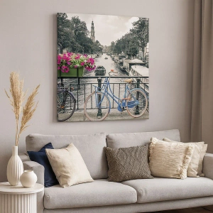 Tablou pe pânză - Culorile unui canal din Amsterdam - 30x30 cm