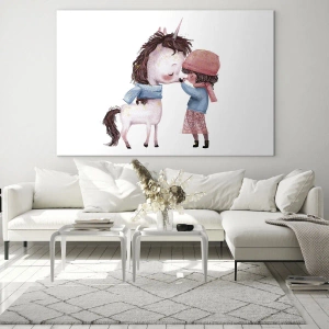 • Pentru copii, Unicorn, Fata, Pentru copii, oameni, animale, Pentru camera copiilor Alb, maro, albastru, roz, Pătrat