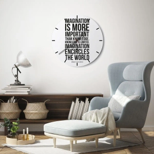 Ceas de perete - Ceas pe sticlă - Einstein despre puterea imaginației - 40x40 cm