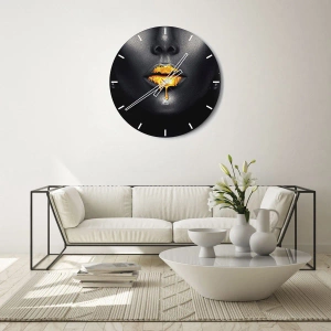 Ceas de perete - Ceas pe sticlă - Buzele de aur - 40x40 cm