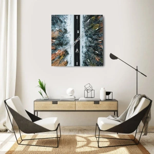 Ceas de perete - Ceas pe sticlă - Prin pădurea de iarnă - 30x30 cm